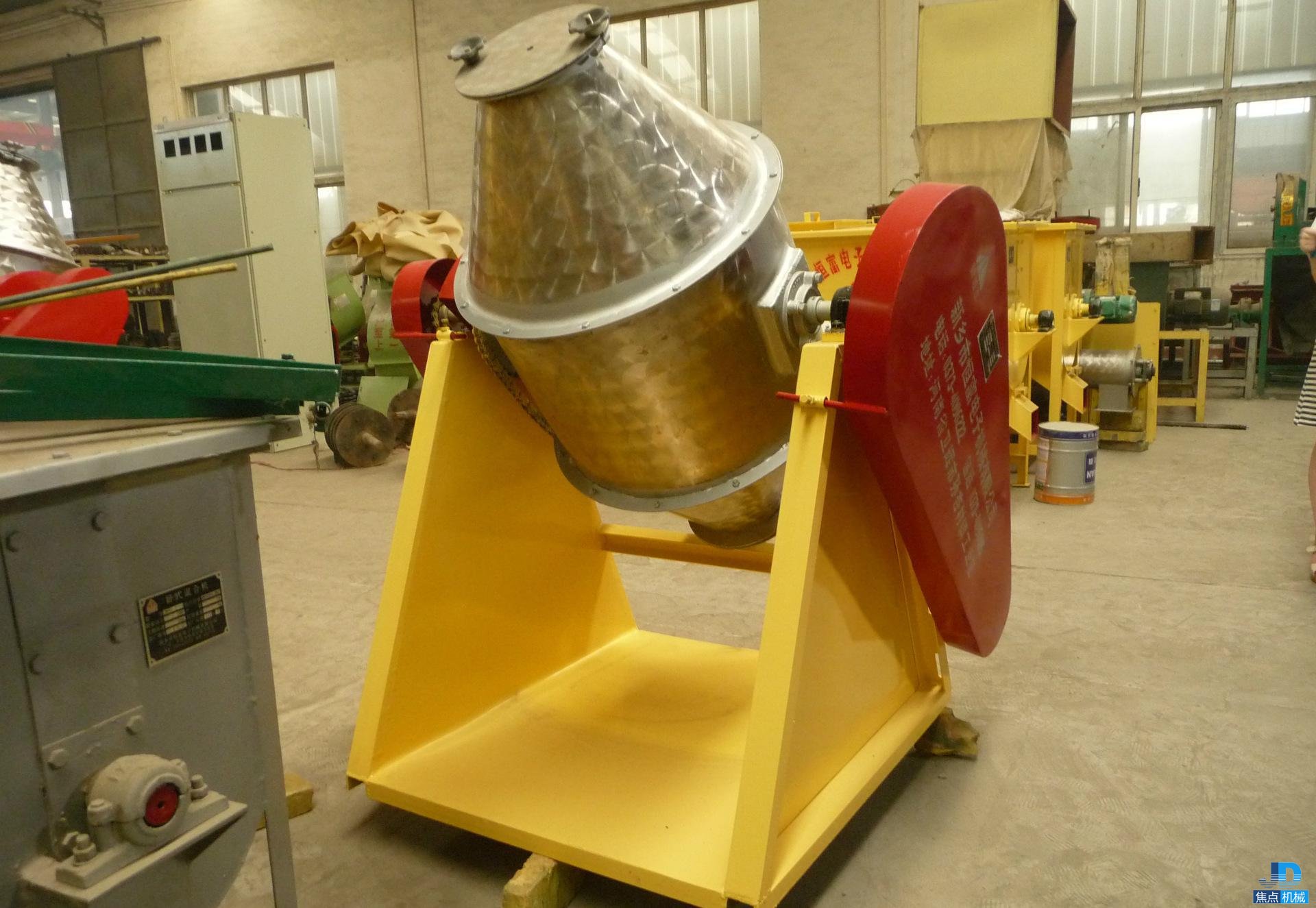 雙錐混合器的兩個(gè)圓錐形也是不對(duì)稱的,但圓柱空間是整體的,不管左右。當(dāng)混合器旋轉(zhuǎn)時(shí),在滾筒重力作用下的物料表現(xiàn)出上下翻滾的效果,上面的材料到底部的材料,下到底部的材料,整個(gè)操作的材料,整個(gè)混合物。如果在圓筒上加擋板,效果會(huì)更好,混合時(shí)間也會(huì)更短。