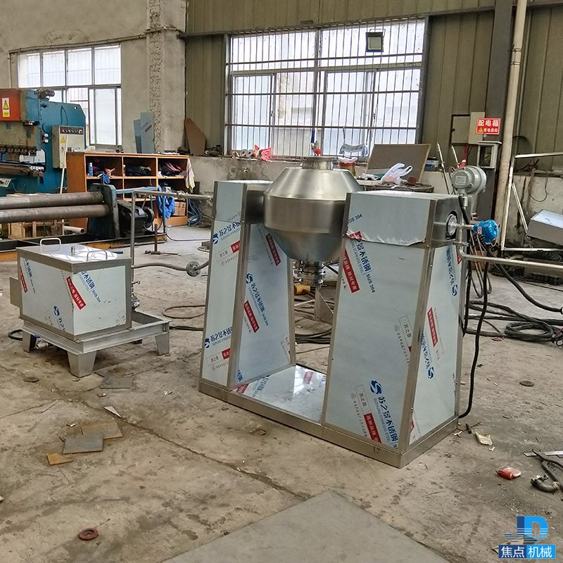 2、在動力驅(qū)動下,罐體作緩慢旋轉(zhuǎn),罐內(nèi)物料不斷地混合,從而達到強化干燥的目的。