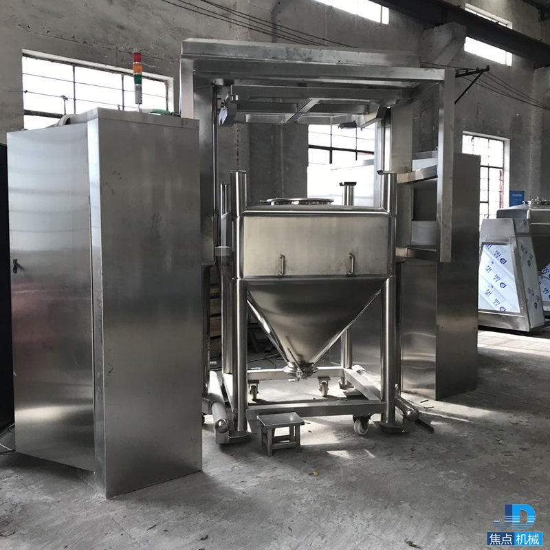3、 混合容器:方錐型特殊的結(jié)構(gòu)形式采用優(yōu)質(zhì)不銹鋼制作,內(nèi)外表面均進(jìn)行拋光,無死角、易清洗,符合GMP要求,出料由蝶閥控制。物料在自重的作用下順利排出。無積料、無交叉污染等優(yōu)點(diǎn)。