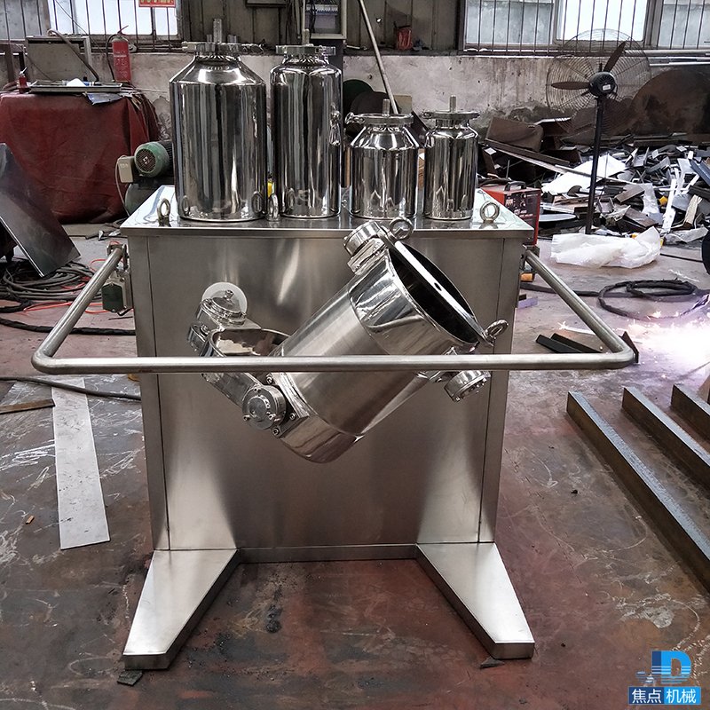 三維混合機原名三維擺動混合機,又稱振蕩式混合機,是目前國內先進的一種粉體混合設備,該機用于制藥、化工、輕工、電工、機械、礦冶國防工業(yè)及各科研單位的粉狀,顆粒狀物料的高均勻度的混合。