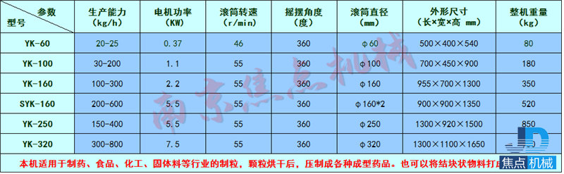 本機(jī)廣泛用于制藥﹑化工﹑食品等行業(yè),將潮濕的粉末狀物料制作成顆粒,亦可粉碎塊狀的干物料。
